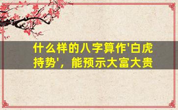 在八字命理中,“白虎持势”是一种特殊的格局,通常与庚辛金日主生于特定月份(尤其是秋季)并得强根或旺势有关,被认为可能预示大富大贵。以下是这一格局的典型特征及构成条件: