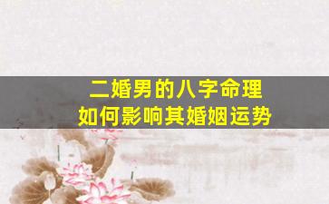 在八字命理中,二婚男性的婚姻运势分析需要综合其命局中的婚姻宫、配偶星、五行生克以及大运流年的影响。以下从专业角度分点解析可能的影响因素:
