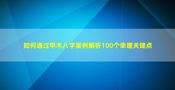 《如何通过甲木八字案例解析100个命理关键点》这一主题,可以系统性地将八字理论与实际案例结合,通过甲木日主的特性展开深度解析。以下为结构化框架和精选关键点示例,供参考: