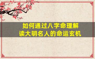 通过八字命理(四柱命学)解读大明历史名人的命运,需结合其生平事迹与八字格局的对应关系,从五行生克、十神配置、大运流年等角度分析。以下以几位代表性人物为例,提供解读思路: