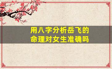 用八字命理分析历史人物(如岳飞)的命盘,本质上是一种基于出生时间推演性格、运势的传统文化实践,其准确性和科学性在现代视角下存在争议。至于“对女生是否准确”的问题,需要从以下几个角度理性看待: