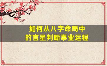 从八字命局中的官星判断事业运程,需结合官星的五行属性、位置、强弱、喜忌以及与其他十神的互动关系综合分析。以下是具体步骤和要点: