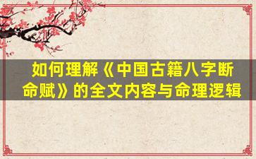《中国古籍八字断命赋》是传统命理学中的经典文献,以赋体形式浓缩了八字(四柱)推命的核心逻辑。要理解其内容与命理逻辑,需从以下几个层面展开: