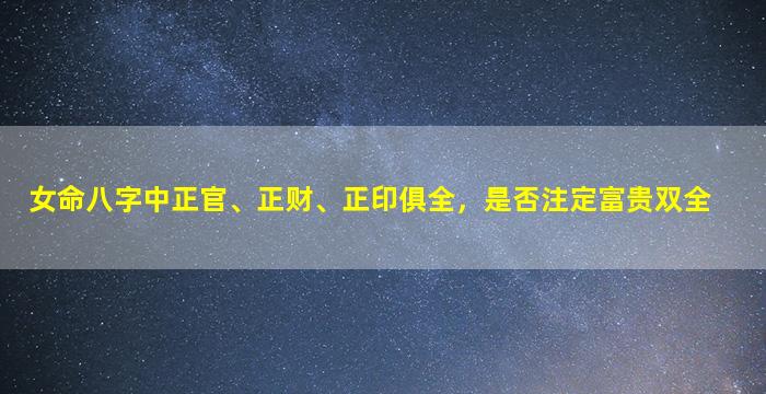 在传统八字命理学中,女命若同时具备正官、正财、正印且配置得当,确实被认为是格局清贵、福气深厚的象征,但“富贵双全”的结论需要结合具体命局综合分析,不可一概而论。以下是关键解析: