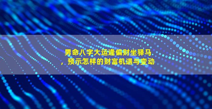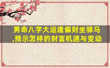 在八字命理中,“偏财坐驿马”的组合通常预示着动态中求财、财富机遇与变动密切相关。这一配置尤其对男命(因男命以偏财为流动之财、异性缘、投机财等)有显著影响。以下是具体的解析: