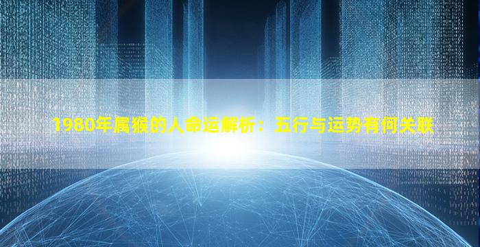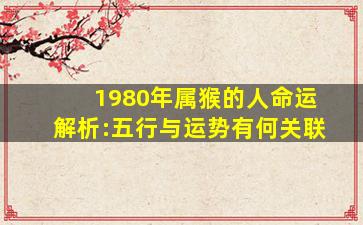 在中国传统命理学中,五行(金、木、水、火、土)与生肖、生辰八字的结合被认为能揭示一个人的性格、运势和命运走向。1980年是农历庚申年,庚属金,申为猴,因此这一年出生的人属“金猴”。以下是关于1980年属猴人的五行与运势的解析: