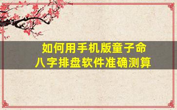 使用手机版八字排盘软件测算“童子命”时,需结合传统命理知识和软件功能进行操作。以下是具体步骤和注意事项,帮助提高准确性: