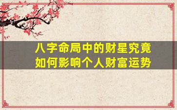 在八字命理学中,财星是代表个人财富、资源、物质享受的十神之一,其强弱、位置及与其他干支的配合会深刻影响一个人的财富运势。以下是财星影响财富的关键点分析: