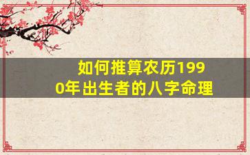 推算农历1990年出生者的八字命理(又称四柱),需结合具体出生日期、时间和地点(用于定真太阳时)。以下是详细步骤和注意事项: