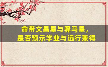 在中国传统命理学中,“文昌星”与“驿马星”是两颗具有特殊象征意义的星曜,它们的组合确实可能对学业与远行(或变动)产生一定影响,但需结合命盘整体格局来分析。以下是具体的解读方向: