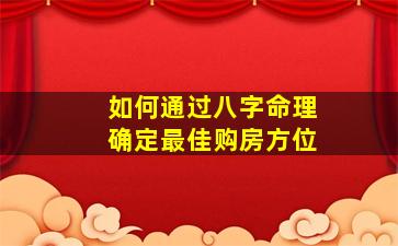 通过八字命理确定购房方位,主要基于五行生克、喜用神以及风水理论相结合。以下是具体步骤和方法: