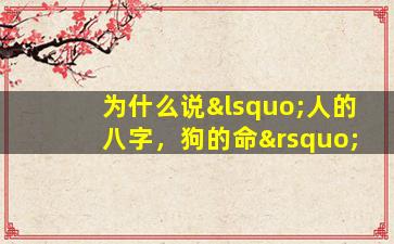 “人的八字,狗的命”是一句民间俗语,通过对比“八字”和“命”的差异,反映了传统文化中对命运的矛盾认知。其含义和背景可以从以下几个方面理解: