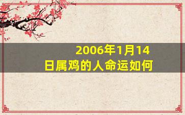 根据中国传统命理学,一个人的命运(八字、五行、运势等)需结合具体的出生年月日时来分析。2006年1月14日属鸡的人,其命运需注意以下几点:
