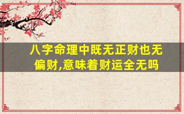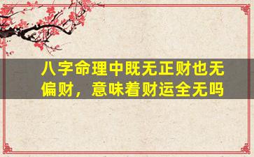 在八字命理中,正财和偏财确实是代表财富的重要符号,但“命局中无财星”并不意味着财运全无,而是需要结合命盘整体结构和五行生克来综合判断。以下从多个角度分析这一现象: