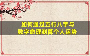 通过五行八字与数字命理测算个人运势,是中国传统命理学与现代数字能量学结合的方法。以下是分步骤的解析: