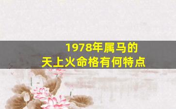 在命理学中,1978年出生的属马人为“天上火”命,这是根据六十甲子纳音的划分(戊午年、己未年属天上火)。结合生肖马的特性和天上火的命格,其特点如下: