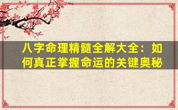 “八字命理”作为中国传统命理学的核心体系,旨在通过出生时间(年、月、日、时)的天干地支(共八个字)分析人生轨迹。其精髓在于对五行(金木水火土)生克、十神关系、大运流年的综合推演,而非简单的“算命”。以下从核心逻辑、学习方法与认知边界三个层面,为你解析如何理性看待命运与自我掌控的关系: