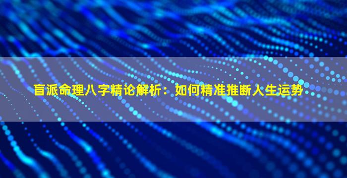 “盲派命理”作为中国传统命理学的重要分支,以其独特的“取象直断”和“口诀秘法”闻名,尤其注重对八字原局的深刻解读和现实生活的对应。以下从盲派核心方法论出发,结合实例解析如何精准推断人生运势:
