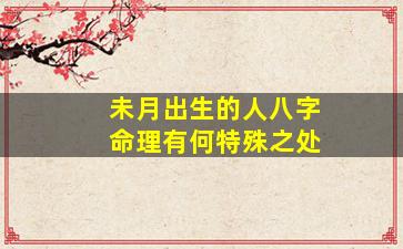 在中国传统命理学中,未月(农历六月,约公历7月7日至8月7日)对应小暑至立秋前,是夏季的最后一个月,五行属土(未土)。未月出生的人八字命理的特殊性主要体现在以下几个方面: