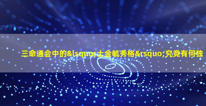 《三命通会》中的“土金毓秀格”是命理学中一种特殊的格局组合,主要体现五行土金相生的能量调和与贵气生成。其独特命理内涵可从以下几方面深入解析: