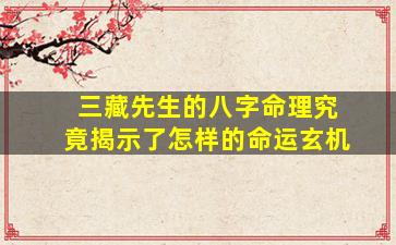 关于“三藏先生”的八字命理分析,由于缺乏具体的出生时间(年、月、日、时),无法进行真实排盘和解读。不过,我们可以从命理学的一般逻辑和文化象征意义出发,结合“三藏”这一名字的历史与玄学关联,进行一些有趣的推演: