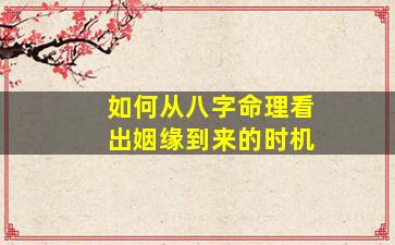 从八字命理看姻缘到来的时机,主要通过分析命局中的配偶星、配偶宫、大运与流年的互动关系来判断。以下是具体方法和关键点: