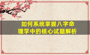 要系统掌握八字命理学中的核心试题解析,需从基础理论、分析方法到实战应用逐步深入。以下是分阶段的系统性学习路径: