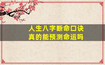 关于“人生八字断命口诀能否预测命运”的问题,需要从传统文化、科学视角以及个人认知等角度综合看待: