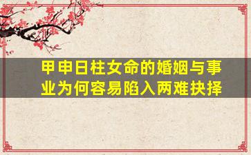 在中国传统命理学中,日柱(出生日的天干地支)是分析个人命运的重要依据之一。甲申日柱的女性(甲木坐申金),其婚姻与事业容易陷入两难抉择的现象,可从命理角度结合五行生克、十神关系和社会文化背景来解读: