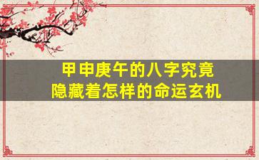 关于“甲申庚午”这个八字,要分析其命运玄机,需结合天干地支、五行生克、十神配置等传统命理学理论展开。以下是一个专业角度的解读框架: