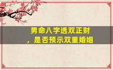 在八字命理学中,"透双正财"是否预示双重婚姻需结合命理学的逻辑和具体命局综合分析,不能一概而论。以下是专业角度的解读:
