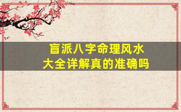 关于“盲派八字命理风水大全”是否准确的问题,需要从多个角度理性分析,以下是一些关键点供参考: