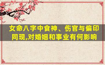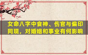 在八字命理中,食神、伤官与偏印同现于女命,确实会对婚姻和事业产生特定影响,需结合十神特性和相互作用来分析。以下是具体解读: