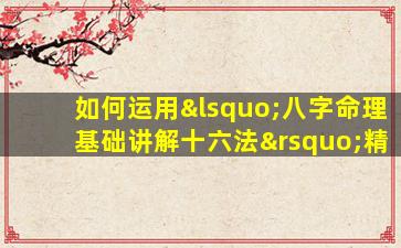 运用“八字命理基础讲解十六法”精准推算个人运势,需要系统掌握命理核心理论并结合实际分析技巧。以下是分步骤的详细方法: