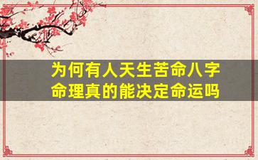 关于“天生苦命”与八字命理是否决定命运的问题,可以从以下几个角度理性分析:
