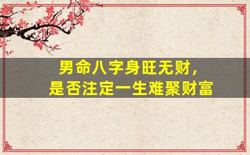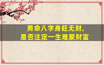 在八字命理学中,"身旺无财"确实是一个需要仔细分析的命局特征,但并不能简单地断言"一生难聚财富"。这一论断需要结合命理学的核心逻辑和现实中的多种可能性来综合判断: