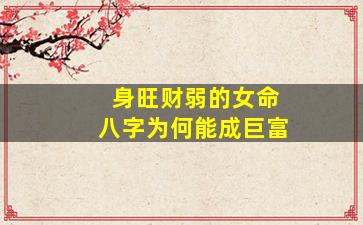 在八字命理中,"身旺财弱"的女命能成为巨富,通常需要结合格局、五行生克、大运走势等多重因素综合分析。以下是一些关键原因和命理逻辑: