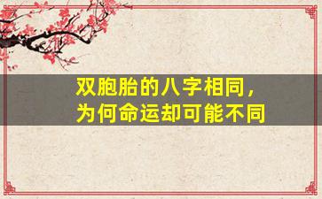 关于双胞胎八字相同但命运可能不同的现象,可以从中国传统命理学和现实因素的多角度进行解释: