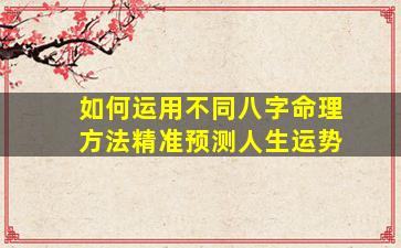 运用八字命理预测人生运势是一门结合传统文化、哲学思维与统计学经验的复杂学问。其核心在于通过不同方法交叉验证,而非依赖单一理论。以下是几种主流方法的综合运用思路,供参考: