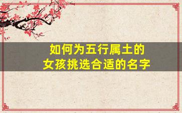 为五行属土的女孩挑选名字时,需结合五行相生原理、字形字义的属土特性,以及音律美感。以下是具体方法及示例: