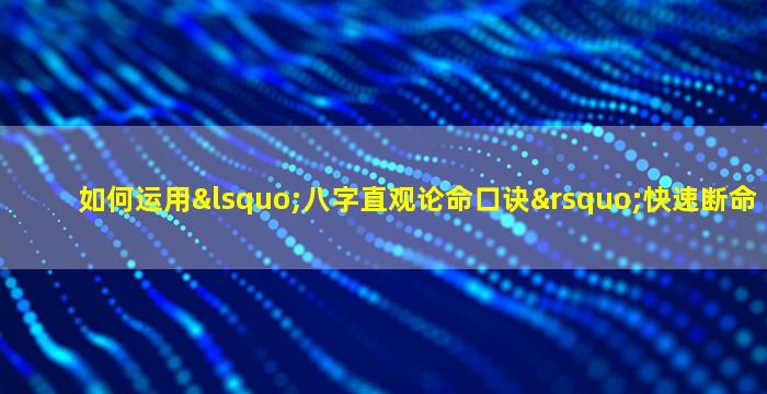 运用“八字直观论命口诀”快速断命的核心在于抓关键、重组合、灵活套用,结合口诀的规律快速提取命局中的核心矛盾。以下是具体步骤和技巧: