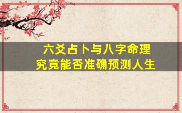关于六爻占卜与八字命理能否准确预测人生的问题,涉及传统文化、科学认知与个人信仰的复杂交织。以下从多个角度分析,供参考: