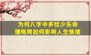 在命理学中,八字(四柱)通过天干地支的组合反映个人的先天禀赋和命运趋势,其中情绪特质(如多忧少乐)确实可能与特定的八字格局相关。以下是具体的分析框架和影响因素: