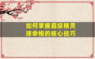 关于“超级精灵球命格”的核心技巧掌握,目前这一概念并未出现在官方《宝可梦》系列游戏中,可能是同人创作或特定改版游戏的设定。不过,基于精灵球的捕获机制和常见游戏术语,我可以为你一套通用的高效捕获逻辑和可能的命格系统解析思路: