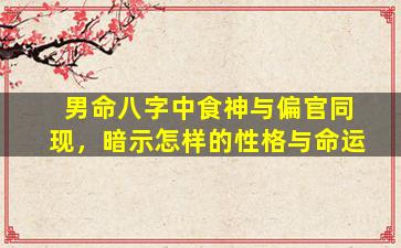 在八字命理中,食神与偏官(七杀)同现于男命的命局,会形成一种独特的性格与命运特征。以下是具体的解析: