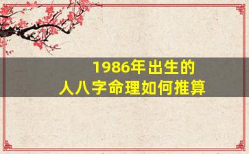 推算1986年出生之人的八字命理,需结合具体出生时间(年、月、日、时)和农历节气,以下为基本推算方法及示例说明: