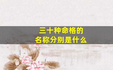 关于“三十种命格”的名称,不同命理体系(如紫微斗数、子平八字、七政四余等)的分类差异较大,且传统命理学中并无完全统一的“三十种命格”标准说法。以下是几种常见命理体系中的部分命格分类,供参考:
