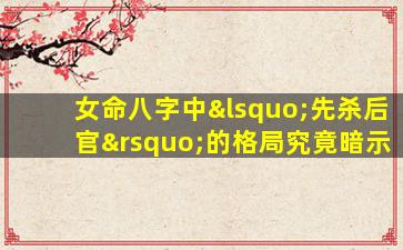在八字命理中,“先杀后官”是女命婚姻分析的一种特殊格局,主要涉及命局中“七杀”与“正官”的排列顺序及其相互作用。以下是这一格局的详细解析: