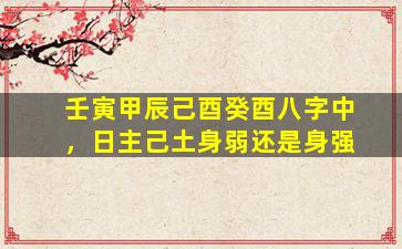要判断八字“壬寅 甲辰 己酉 癸酉”中日主己土的强弱,需综合以下因素分析: