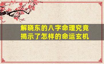解晓东作为中国知名歌手,其生辰八字并未公开,因此无法进行准确的命理分析。八字命理需要具体的出生年月日时(缺一不可)才能排盘推算,而名人隐私信息通常难以获取。以下是一些关于八字命理的通用知识,供参考:
